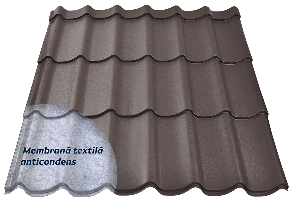 Tigla metalica Alpin 3D PLUS 0.45 mm RAL 8019 Mat Structurat Maro brun