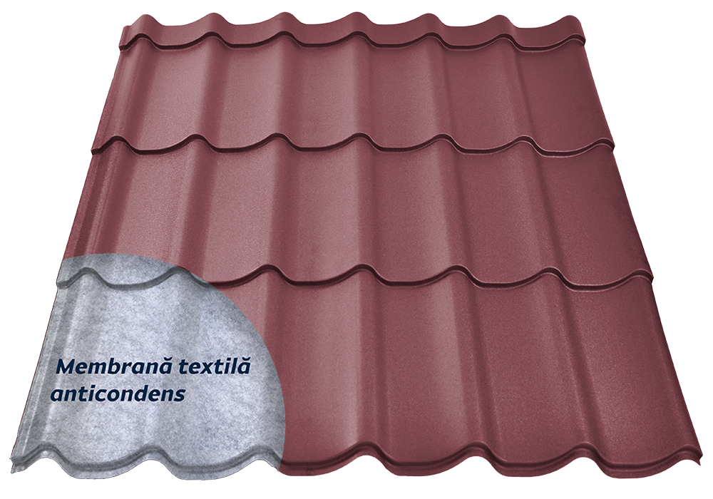 Tigla metalica Alpin 3D PLUS 0.5 mm RAL 3005 Mat Structurat Visiniu