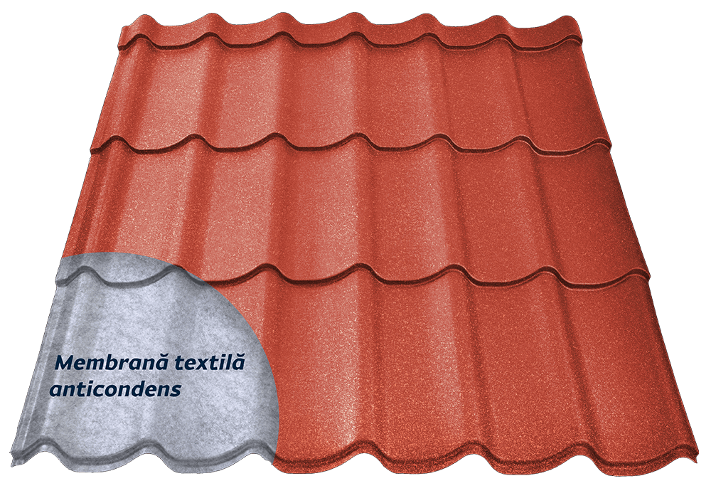 Tigla metalica Alpin 3D PLUS 0.6 mm RAL 3000 Briliant Rosu