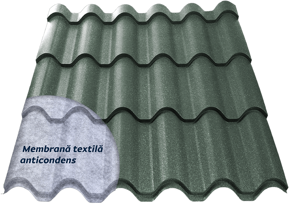 Tigla metalica Mediteran PLUS 0.5 mm RAL 6020 Mat Structurat Verde