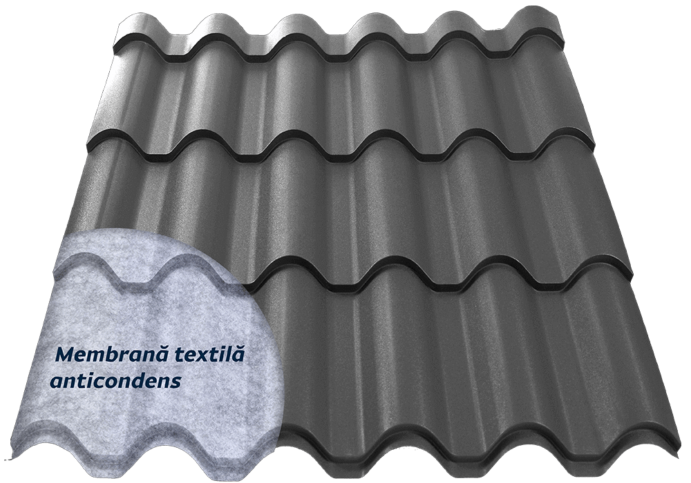 Tigla metalica Mediteran PLUS 0.5 mm RAL 7024 Mat Structurat Gri