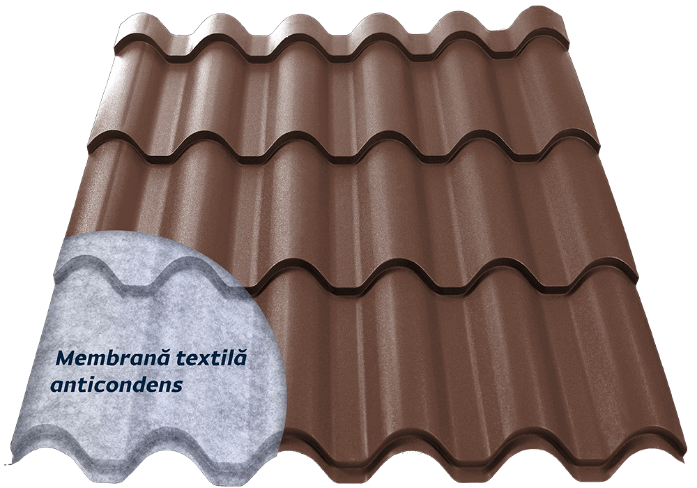 Tigla metalica Mediteran PLUS 0.5 mm RAL 8004 Mat Structurat Caramiziu